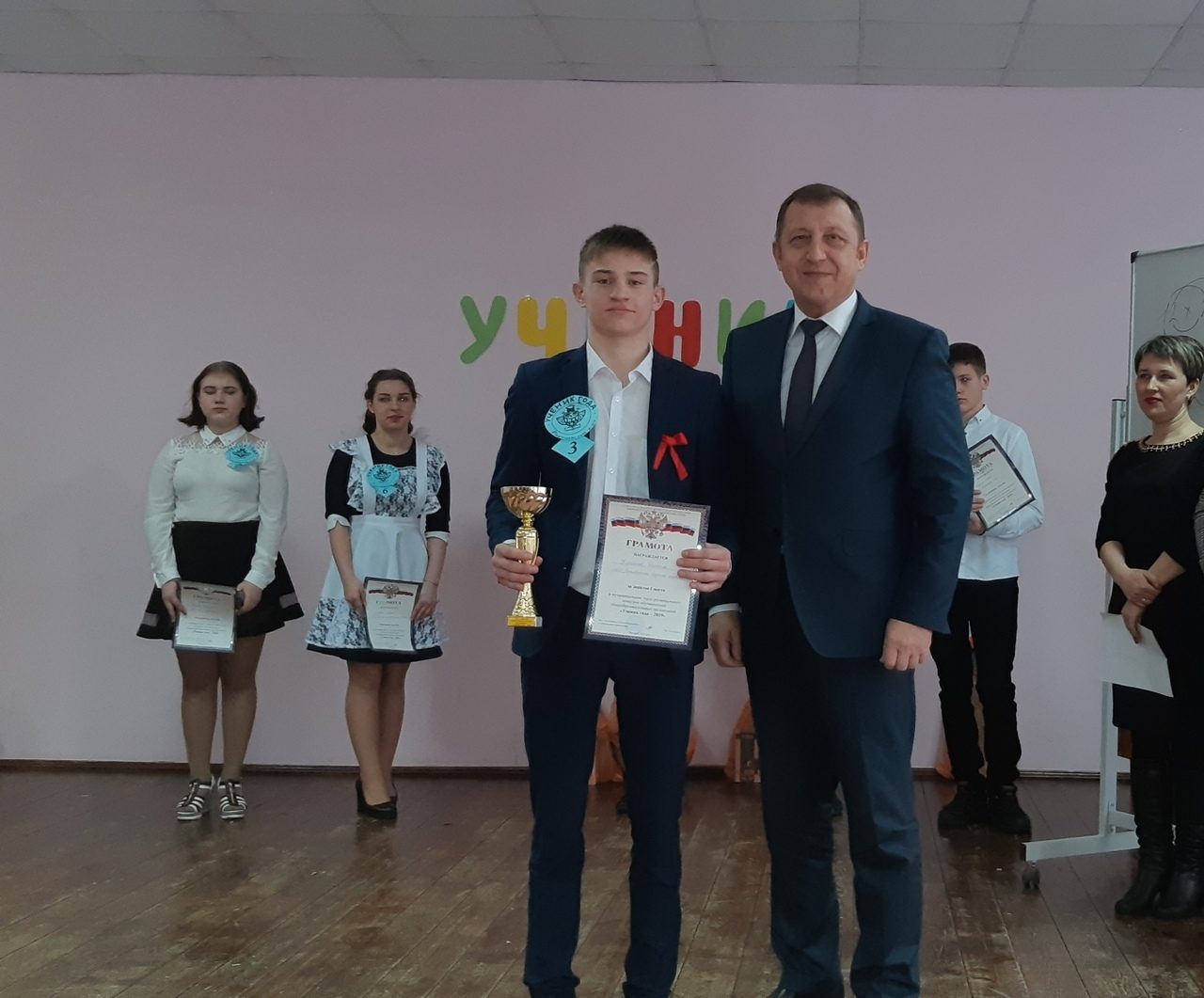 По итогам всех конкурсных испытаний победителем признан Киркачёв Данил, призерами стали Наумов Егор и Кузяева Альбина. Все участники конкурса награждены дипломами и памятными подарками, Киркачёв Данил так же удостоен Кубка победителя и будет представлять наш район на региональном этапе конкурса.